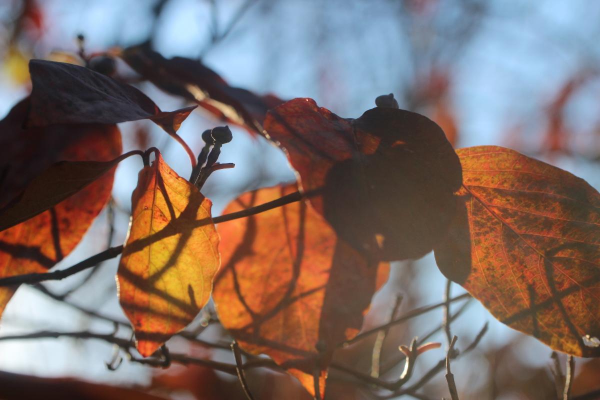 One of the most spectacular things about this time of year is the way the low-angled fall light catches in the remaining autumn leaves.