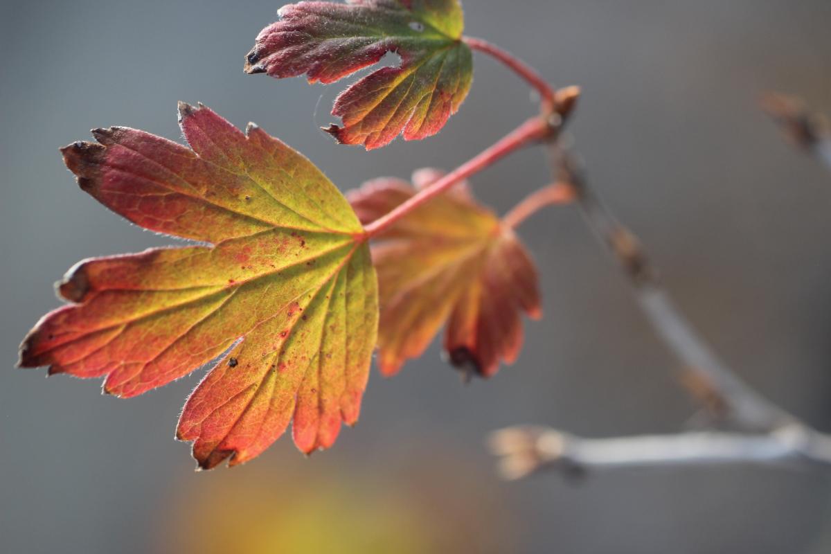 There's another layer though, one that often goes unsung, which is the color of the autumn understory. Much of what still holds color and fall interest at this time of year are shrubs and small trees that have been sheltered from the wind as larger trees have lost their leaves. Native dogwoods (Cornus spp.) in red and orange, roses (Rosa spp.) in yellow and purple, gooseberries (Ribes spp.) in shades of yellow and red, Sumacs (Rhus spp.) in bright reds and oranges--many of them are still putting on a show. And it's not just shrubs and woody species that are still keeping things interesting!