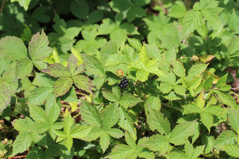 A prostrate prickly briar that produces 1 inch white flowers from April through June followed by delicious large (1 inch) black fruits in July, leaves compound with 3 to 5 toothed leaflets up to 3 inch long, lots of prickly thorns, spreads by seed & rooting stems, the tap root that develops makes this plant very drought tolerant, will grow in very poor soils, good nectar source for native bees & butterflies, fruit are eagerly eaten by songbirds, game birds, small mammals (mice, chipmunks, etc.) and people.