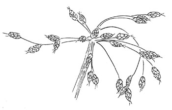 Fertile culms produce drooping clusters of brown flower heads as early as May which persist as brown seeds heads all summer & into fall, upright hollow leaf-less stems can be 1/3 inch across at the base and gradually become more slender toward the tips, can tolerate standing water up to 12 inch deep, spreads rapidly by creeping rhizomes, somewhat salt tolerant, good vertical accent, clay & Black Walnut tolerant, good rain garden plant, wildlife food & nesting habitat.