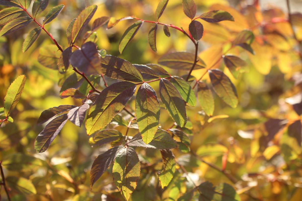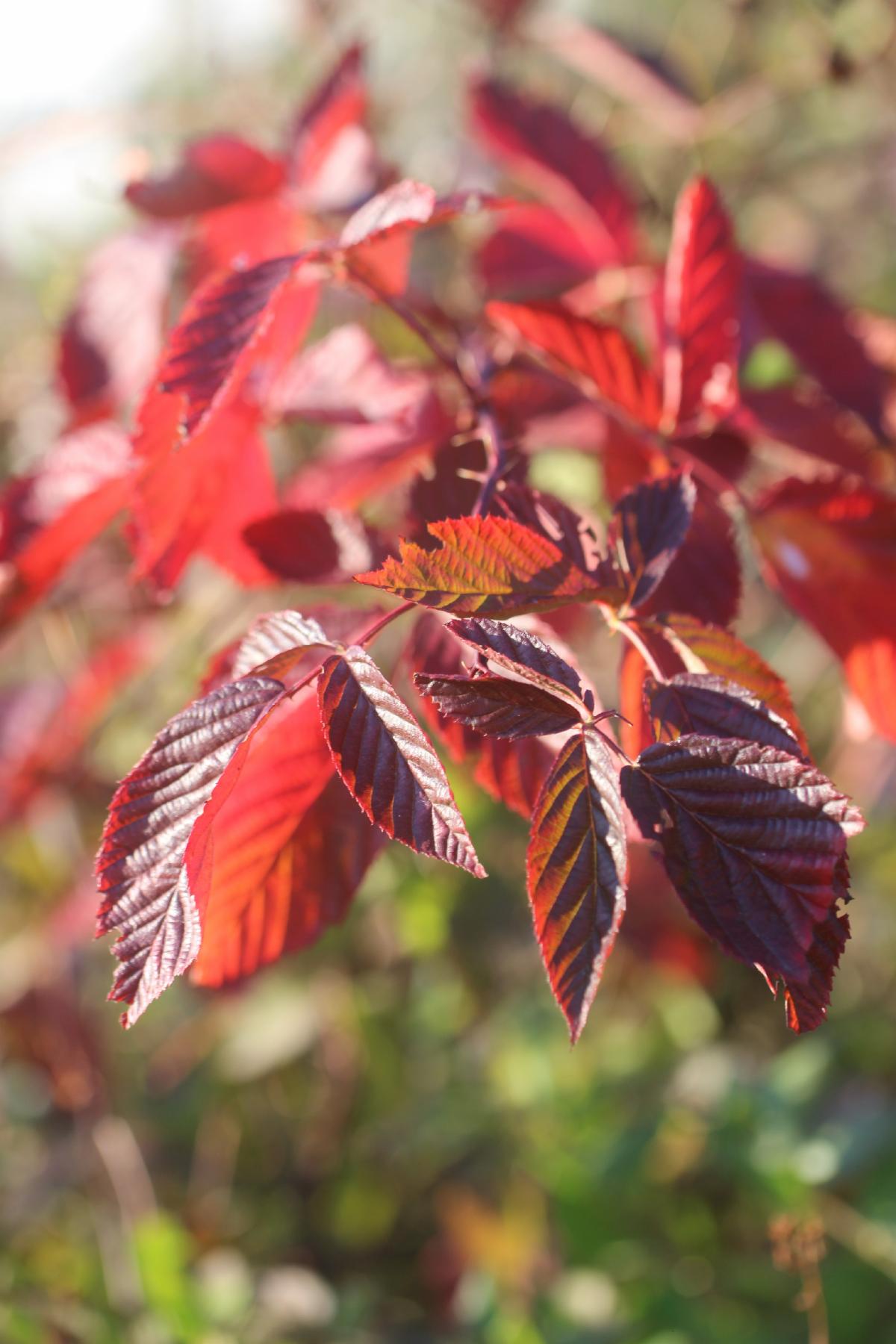 There's another layer though, one that often goes unsung, which is the color of the autumn understory. Much of what still holds color and fall interest at this time of year are shrubs and small trees that have been sheltered from the wind as larger trees have lost their leaves. Native dogwoods (Cornus spp.) in red and orange, roses (Rosa spp.) in yellow and purple, gooseberries (Ribes spp.) in shades of yellow and red, Sumacs (Rhus spp.) in bright reds and oranges--many of them are still putting on a show. And it's not just shrubs and woody species that are still keeping things interesting!